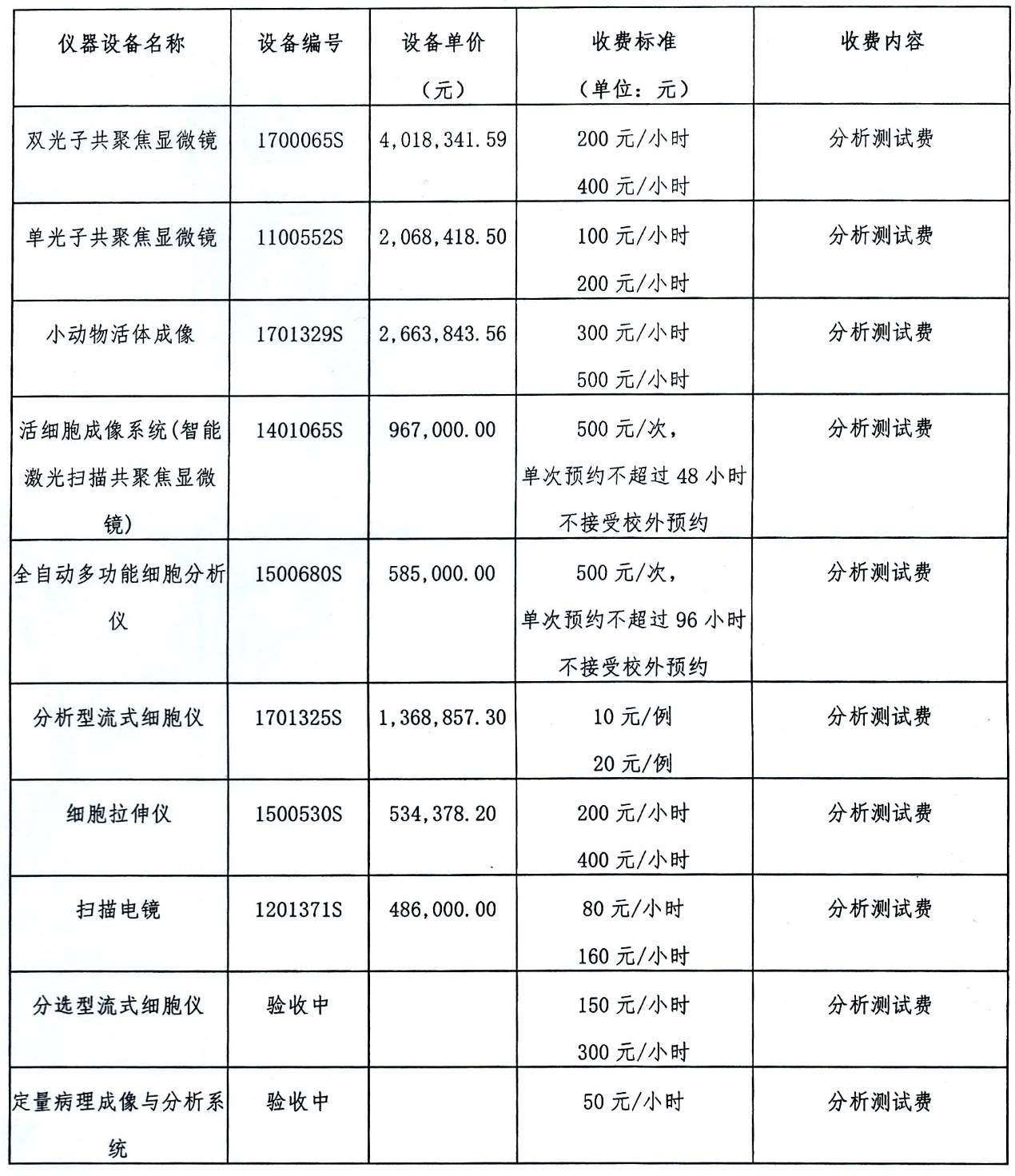 2.贵重大型仪器设备测试费用。