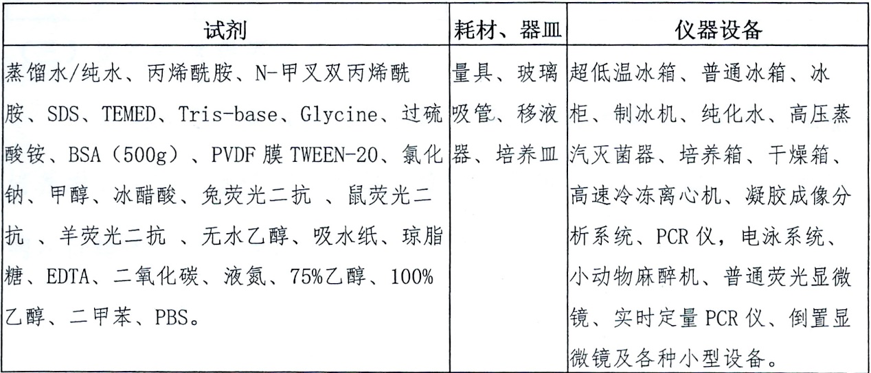 可免费使用的试剂、耗材与仪器设备: