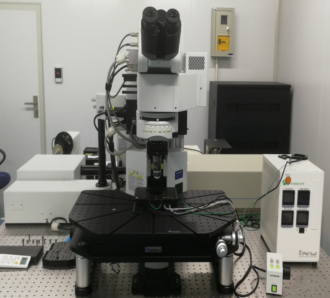 双光子荧光显微镜是结合了激光扫描共聚焦显微镜和双光子激发技术的一种技术。双光子激发的基本原理是:在高光子密度激光激发下,荧光分子同时吸收两个长波长光子,发射出一个波长较短的光子。双光子显微镜具有光漂白和光毒性小、信噪比高、穿透深度深等特点,因此比单光子显微镜更适合长时间的观察和研究在体活细胞和组织,更适合对厚的生物样品进行深层次的研究。